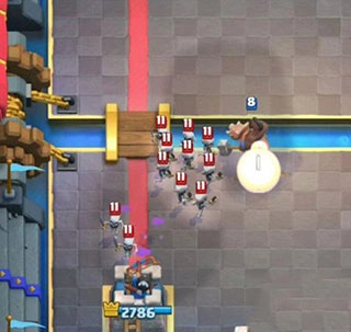 具体操作示例:若对方在桥头部署骷髅海,我们可派出野猪或攻城锤吸引其仇恨。这样既能借助野猪对敌方发起进攻,又能完美化解骷髅海的威胁,一箭双雕,何乐而不为?