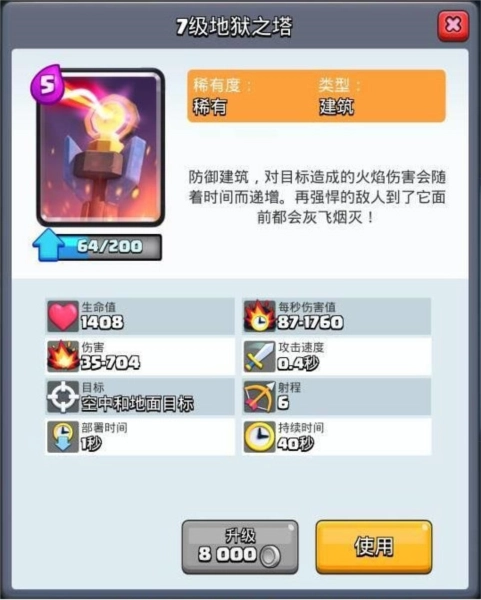 卡牌解析:地狱之塔属于5费稀有卡牌,其射程为6,伤害机制呈递增状态——尽管初始伤害不高,但会逐步提升,因此在应对高血量卡牌时具备显著优势;不过它存在一个短板,就是容易被小电克制,小电能够中断其伤害递增的进程。