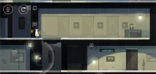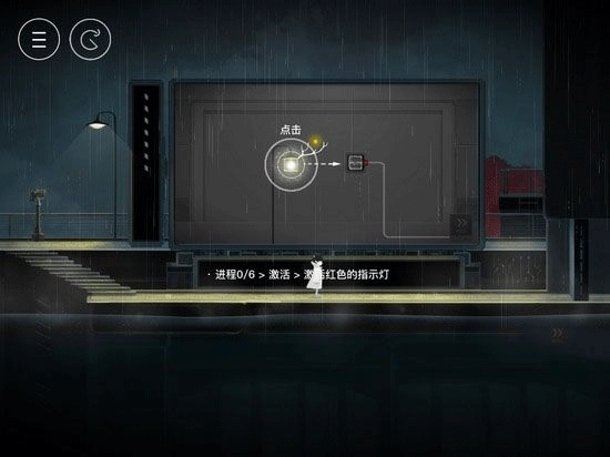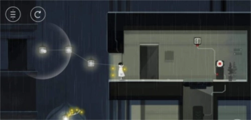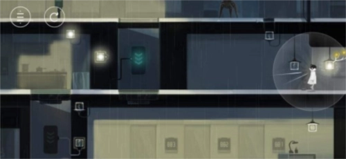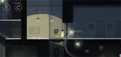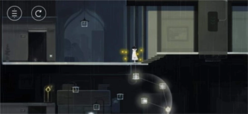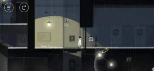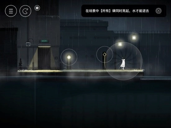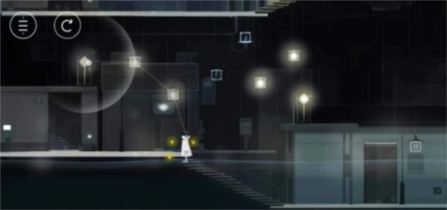 第一步:进入画面后,径直向右移动,用手指把前方的灯光拖到黑色灯柱的位置,接着前往最右侧吸收灯光,再走到掉落的灯柱处,即可进入下一个场景。