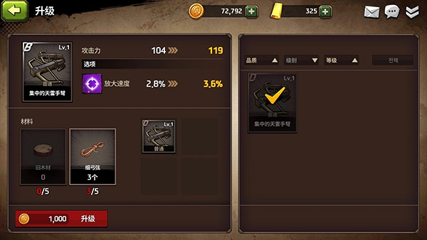 四:在地图准备页面点击英雄管理,即可查看装备与武器的属性,也能对武器装备进行升级。在此处的材料区域,点击选中的材料,可进行材料的合成或分解操作。你的装备等级与属性,直接决定了伤害的高低。