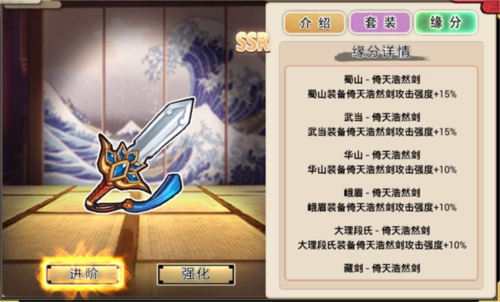 强攻—灵剑破:对敌方后排造成内功伤害,同时有50%的概率获得可维持1回合的无敌护盾。