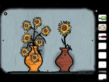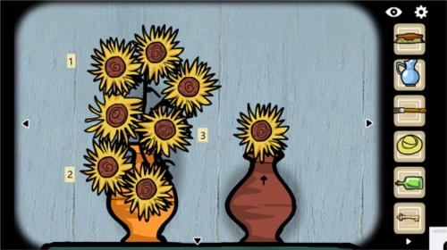 按照图中所示的顺序,点击左侧花瓶里的【向日葵花朵】,右侧缓缓升起的向日葵会带出一把【小钥匙】
