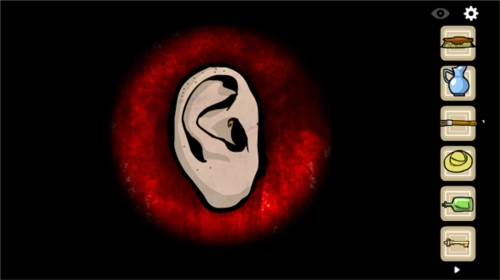 4,耳朵漫游:我们不妨将其理解为顺着耳朵潜入梵高的大脑一探究竟,留意一下,耳朵里那把枪和问号很容易被忽略,而在耳朵深处,我们能看到两扇门——一扇通向主人格所感知的现实世界,另一扇或许连接着由自身抑郁症衍生出的另一种人格的世界。