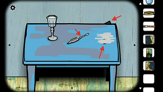 6、桌子上的酒勺和桌子右上角的碎片