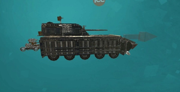 专为PVP设计的重装版战车,额外加装了装甲以实现全方位防护。为保证稳定性,拆除了两侧的火箭装置,更换为三门速射炮和一挺机枪,因此火力较之前版本略有降低。此外,无人小车的自爆功能被移除,原因是自动对战开始后它会立即触发自爆。这款战车配备推进器,凭借推进器的助力,只要遇到斜坡就能腾空而起。