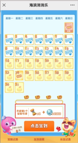 第二种获取方式是通过签到。关注海滨消消乐的微信公众号,之后在该公众号内坚持每日签到,就能得到银币奖励。