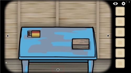 2、蓝色的桌子上放着一盒火柴,点击桌子就能查看,再点击火柴,把它放进你的背包里。