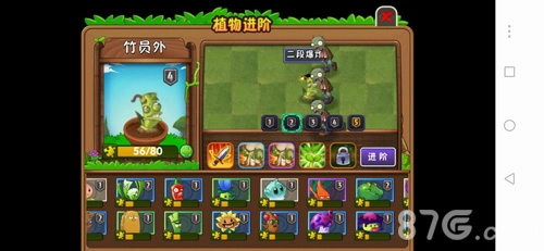 2、要是碰到难关该如何应对呢?在我们闯关的过程中,难免会遇到一些棘手的关卡。实际上,几乎所有关卡都能用一阶植物通过,大家可以多尝试几次。要是反复尝试后还是没办法通关,也可以考虑使用黄瓜道具,或者用钻石购买能量豆,还能选择升级植物来提升实力。