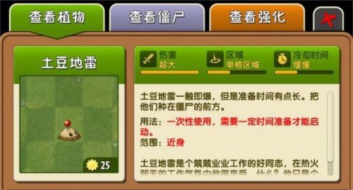 这两种植物的爆发效果都挺鸡肋的。土豆雷能瞬间破土这点还算不错,既能应急,也能用来对付雪人——等雪人走到第一格时立刻种下,然后马上喂能量豆就行。不过它们的分裂能力实在太坑了,挺考验运气的。