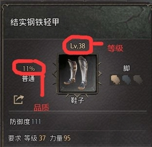 能对基底属性产生影响的,唯有装备的等级和装备的品质(如下图所示)。