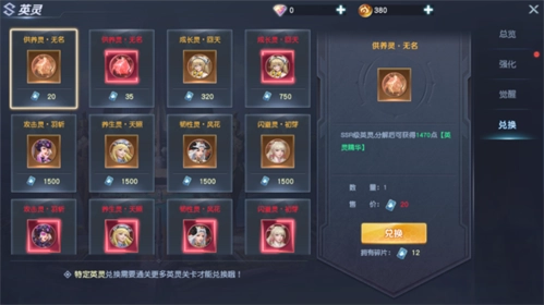SR品质及以上的英灵能够开启觉醒玩法,通过消耗相同的英灵就能对该英灵进行觉醒操作,从而提升英灵的基础属性。