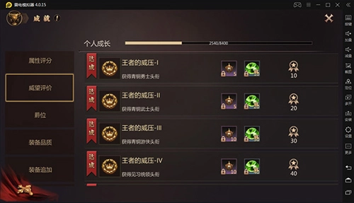 个人成长主要围绕玩家自身展开,涵盖等级、战力、属性评分、装备、法宝等方面。等级提升和战力增强的过程中,玩家能够达成相应成就并获取奖励。