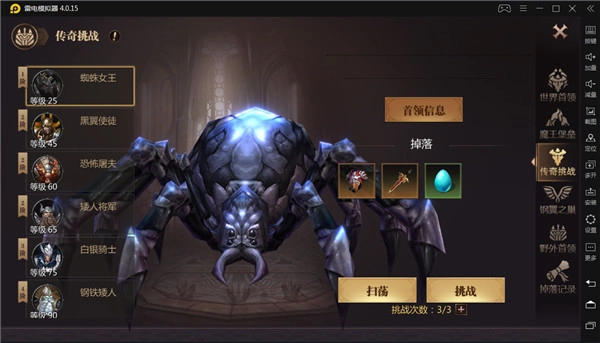 由此不难发现,传奇怪物的等级差距相当明显,到了后期,甚至需要达到30级才会出现新的BOSS!另外,传奇挑战每天仅有三次机会,所以建议大家做好充分准备后再去挑战,以免浪费这个获取强力装备的宝贵机会。