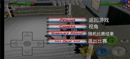 右侧:A代表攻击;G代表抱住;R代表奔跑;P代表拾取;T代表嘲讽或双肩压地;眼睛图标用于更换或锁定对手。