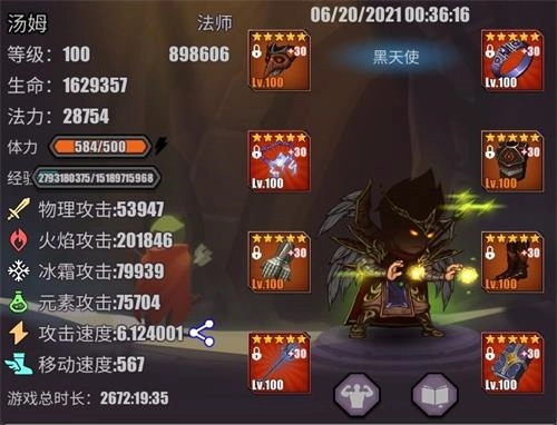 法师的装备配置为:法力回复、法力值、火焰攻击、火焰攻击、冰霜攻击与生命值。