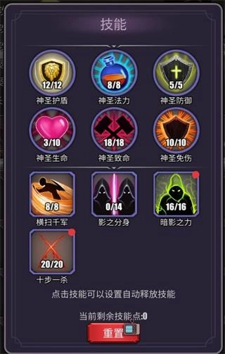 刺客技能搭配建议:暗影之力(技能3)与十步一杀(技能4)组合使用。若技能点数不足,可考虑下调神圣生命技能的点数来进行调配。
