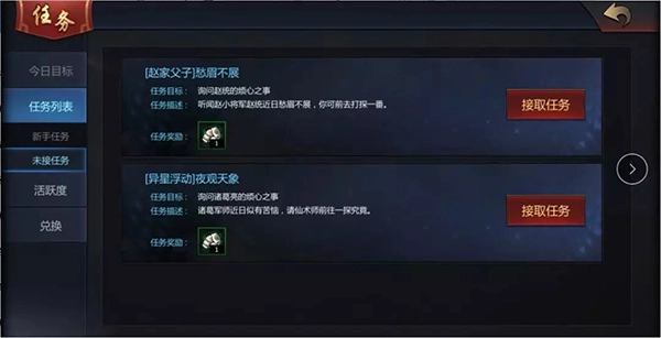了解每日任务之后,接下来就带大家看看任务列表吧~任务列表里包含新手任务在内的各类主支线任务,点击接取任务或前往,就能获取任务引导。