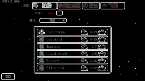游戏开局时由主机设定冒充者数量,最多可设3个。不过,由于冒充者的胜利条件是当自身人数与船员人数相等时即可获胜,所以3个冒充者的游戏体验会比较糟糕,而设置2个冒充者则更为合理。