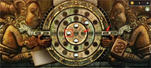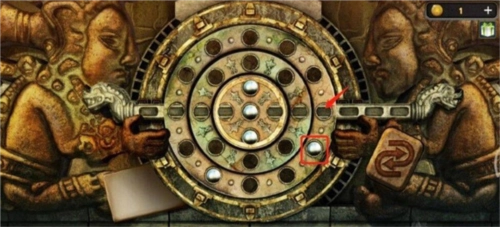 3、完成转动后,所有圆球都位于横杆之上,随后向右拉动横杆。拉动横杆后,左侧的两个圆球会移动到最内侧的圆盘上,接着转动最内侧的圆盘。