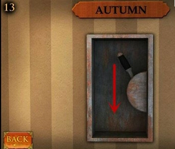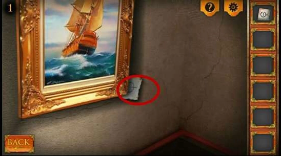 6、打开后呈现出一张拼图,我们将其拼好,需要把左中和右上的拼图块对调,接着再把左上和左中的拼图块对调就完成了。拼好之后,画框后面会露出一个暗槽,里面有一个把手,把把手往下拉,天花板上的天窗就会降下一架梯子。