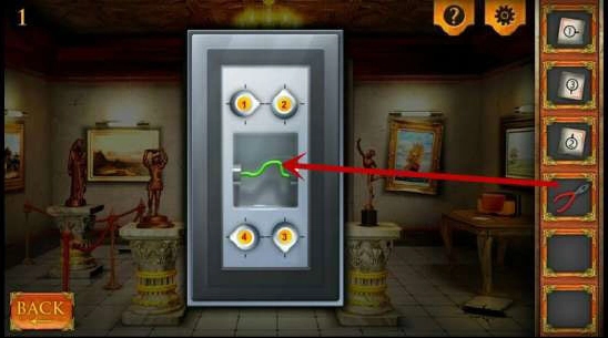 六、接下来我们点击门边的控制器,参照之前找到的4页纸上的数字调整控制板的数字,再用老虎钳剪断电线,门就能打开,顺利通关。