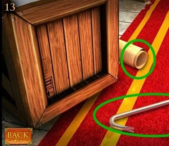2、接着点击左侧的木箱,就能在箱子旁边找到撬棍和第三张画纸。