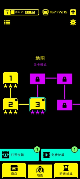 5、另外,界面上显示着3颗星星,它们代表着你的闯关星数,所以你要尽力去获取这些星星。