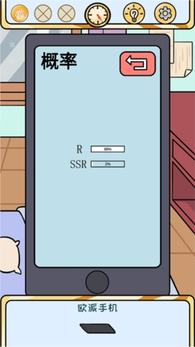 ①进入设置界面,切换至管理员模式,随后返回;接着打开“欧皇的烦恼”应用,进入概率设置页面,选择SSR选项,再次返回,最后选择单抽功能。