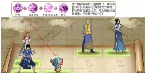 那么配合他们的话,可以带上卡普和乔巴。为什么要带卡普呢?因为卡普有个天赋,能给阵容里的海军角色增加攻击力。