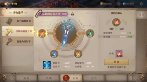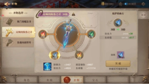 神圣的血石:通过激活、培养与突破,能够提升固定增伤效果和防御力属性。
