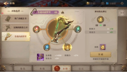 神圣的女神石:通过激活、培养与突破,能够提升防御力和攻击力。