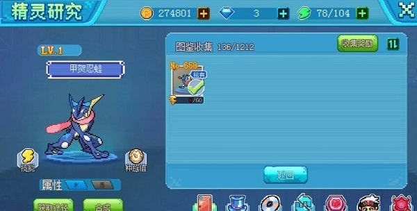 1、进化阶段:呱呱泡蛙→15级进化为呱头蛙→35级进化为甲贺忍蛙。
