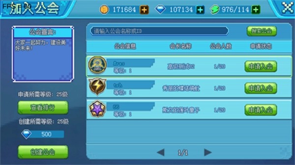 没有加入任何公会的你,既可以在公会系统里添加公会,也能搜索特定的公会申请加入。听说不少萌妹纸都爱创建公会当会长,要是你加入她的公会,和她一起打造最强公会,倒也是个不错的目标呢~要是你志向更远大,想当公会领袖,带领大家一起进步,那等你到25级时创建一个公会会是个很棒的选择,你可以邀请好友加入,也能对外招募志同道合的伙伴,一起朝着共同的目标努力。