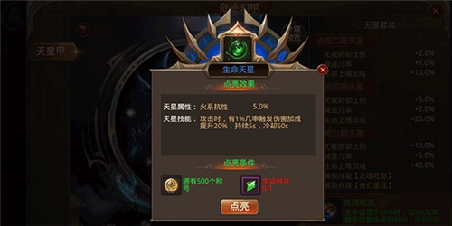 生命天星,只要你拥有500个称号,再获取一个生命碎片,就能将其点亮。