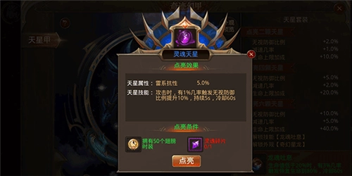 灵魂天星的点亮条件是:当你拥有50个翅膀时装后,再获取一个灵魂碎片即可。