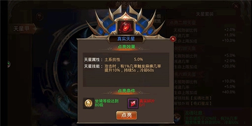 奇迹幻甲天星甲,需点亮全部天星方可解锁强大技能与炫酷外观特效。
