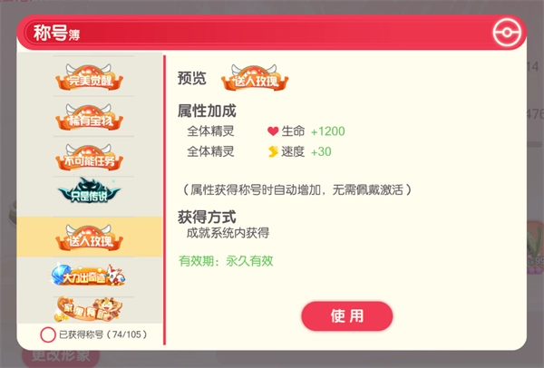 升星达人:只要有20只精灵达到12星就能获得这个称号。它自带1%的速度加成,而且不用特意佩戴就能生效。