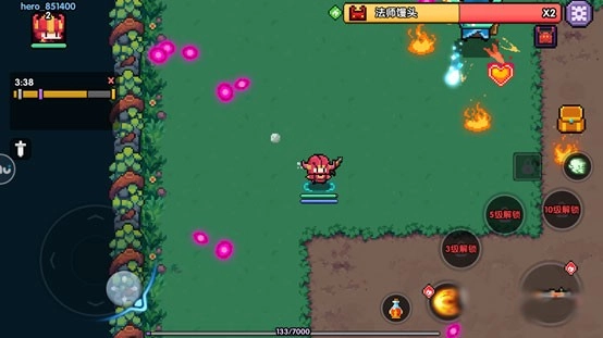 在游戏中,我们主要借助滑轮来操控角色的移动与攻击。技能槽共有四个,需达到十级方可全部解锁。使用技能会消耗MP值,而MP会自动缓慢恢复。
