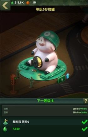 存钱罐的等级受指挥部等级影响,指挥部等级越高,存钱罐能存放的安全物资数量就越多。不过升级存钱罐需要消耗大量塑料和颜料,因此存钱罐是保障资源不被完全掠夺的“保底”型建筑。