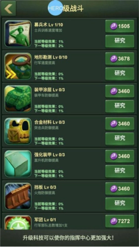 在研究室的初级战斗研究里,我们能找到募兵术,它能有效提升产兵速度,还能减少部队训练加速卡的消耗。