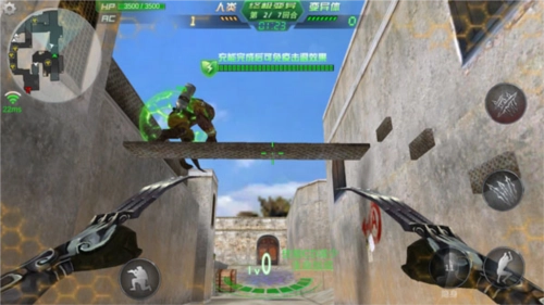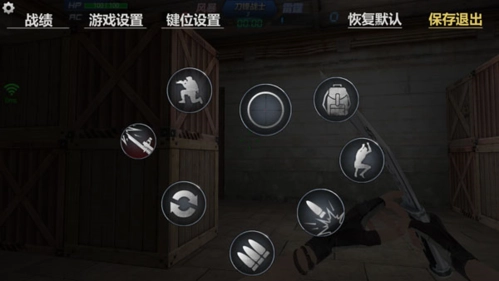 画面左下角设有一个圆圈形状的虚拟按钮,右下角则有一个未显示的虚拟按钮,玩家可通过滑动这两个虚拟按钮来操控人物动作——其中左下角的按钮负责控制移动,右下角的按钮则用于控制准星与射击。此外,画面左上角的设置按钮集成了战绩查询、设置以及键位设置等功能;左下角还设有蹲下按钮;画面右侧则分布着跳跃、切换武器、更换子弹、投掷手雷等操作按钮。