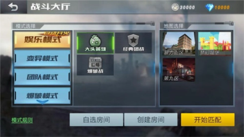 进入【战斗大厅】就能选择模式、创建房间,开启与其他玩家的热血枪战。
