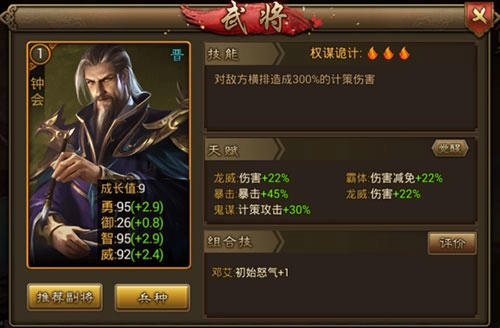在名将录里,你能查看不同阵营、不同品级的武将,每个武将的成长值等各项属性、技能以及可携带的兵种都清晰可见,这会让你在挑选武将搭配阵容时更加轻松。