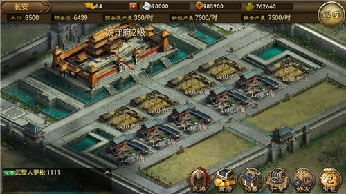和其他SLG游戏不同,《朕的江山》对内政系统进行了大幅精简。目前游戏里的内政操作很简单,只需在城池中建造并升级粮草、银币、预备役基地,同时升级已占领城市的太守府就可以了。
