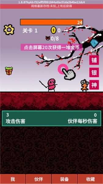 2、我们能够通过点击屏幕对敌人发起攻击,而且每点击屏幕20次就能得到一堆金币。
