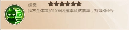 虎贲曾是神级将台,作为披着红色将台外衣的超暗金将台,它堪称反杀神器。不过由于过于强横,被策划大幅削弱,直接回到了红色将台的水平。原本它能额外增加闪避值,现在改成了增加闪避概率。尽管这次削弱幅度很大,但它依然是个不错的将台,搭配蔡文姬去推那些原本打不过的关卡,往往能带来意外的收获。