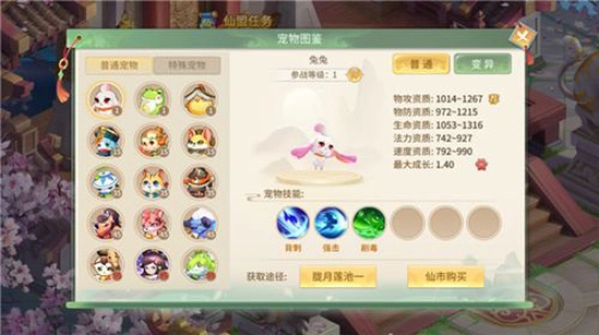 3、变异宠物:通过对普通宠物进行洗髓操作变异而来,其资质相较于普通宠物更为出色,还能额外获得一个随机技能,是十分值得携带和培养的宠物。