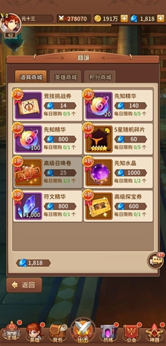 11、游戏里还有不少玩法,像公会福利、神秘商店之类的,都得每天去参与。有任务就把任务做了,公会商店能兑换英雄碎片,里面还有对应的符文、碎片和装备等物品。