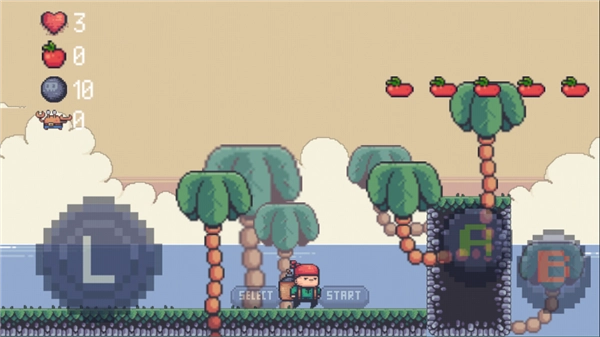 4、留意棕榈树随机掉落的果实炸弹,同时注意跳跃高度——按住跳跃键能让角色跳得更高。