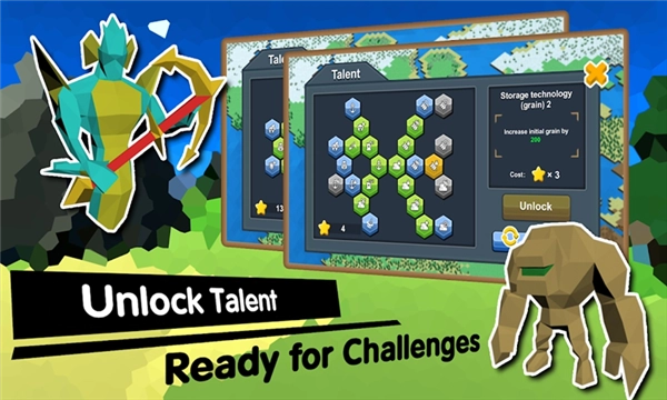 不同种族都具备独特的种族技能,有的拥有坚固的护盾,有的配备锋利的长矛!每个种族还设有专属的天赋系统,每个种族提供25种天赋技能供你自由定制,随着进程推进获取天赋点数,强化你的部队吧!